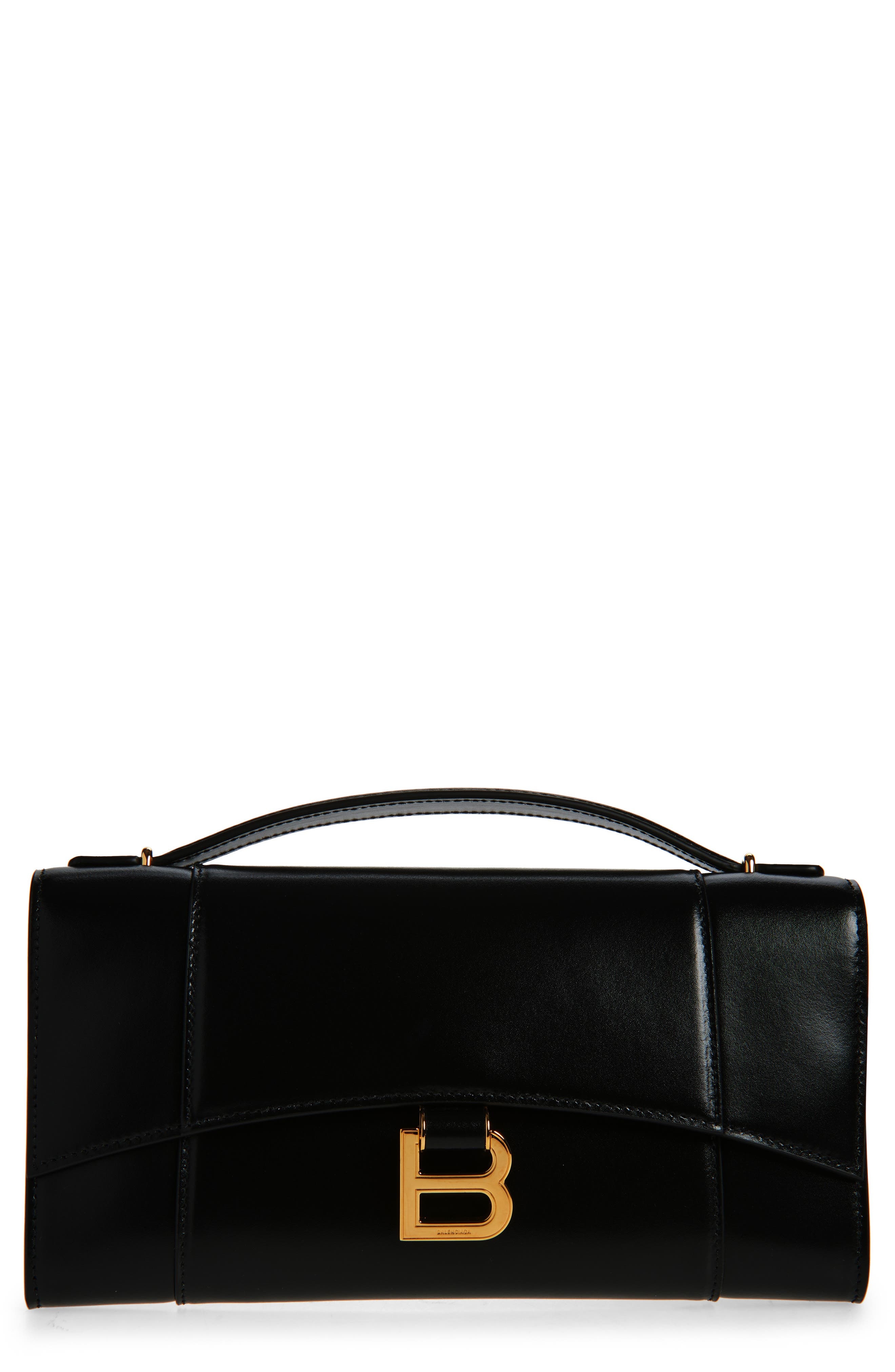 Balenciaga Hourglass Leather Top Handle Clutch in 1000 Black at Nordstrom
