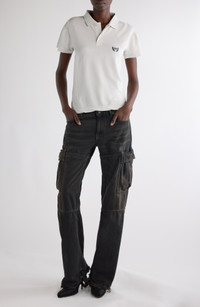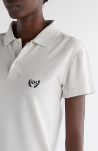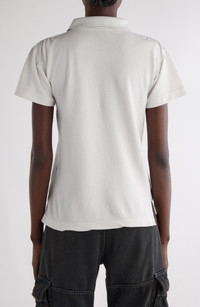 Laurel embroidery hints at preppy provenance on this fitted cotton-pique polo, but even collegiate classics turn subversive under Demna's supervision—hence the rumpled asymmetric hem. Button half placket Ribbed cuffs and hem Short sleeves with ribbed cuffs Side slits 100% cotton Dry clean or machine wash, line dry Made in Portugal Designer Clothing