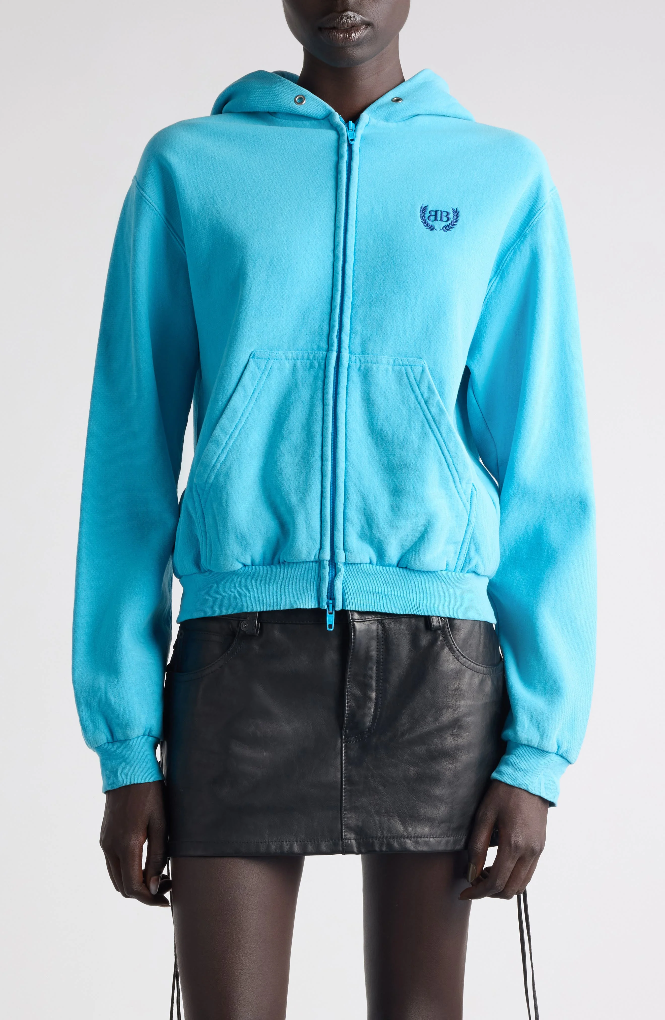 Balenciaga Laurel Embroidered Full Zip Dry Fleece Hoodie in Azure/Navy at Nordstrom