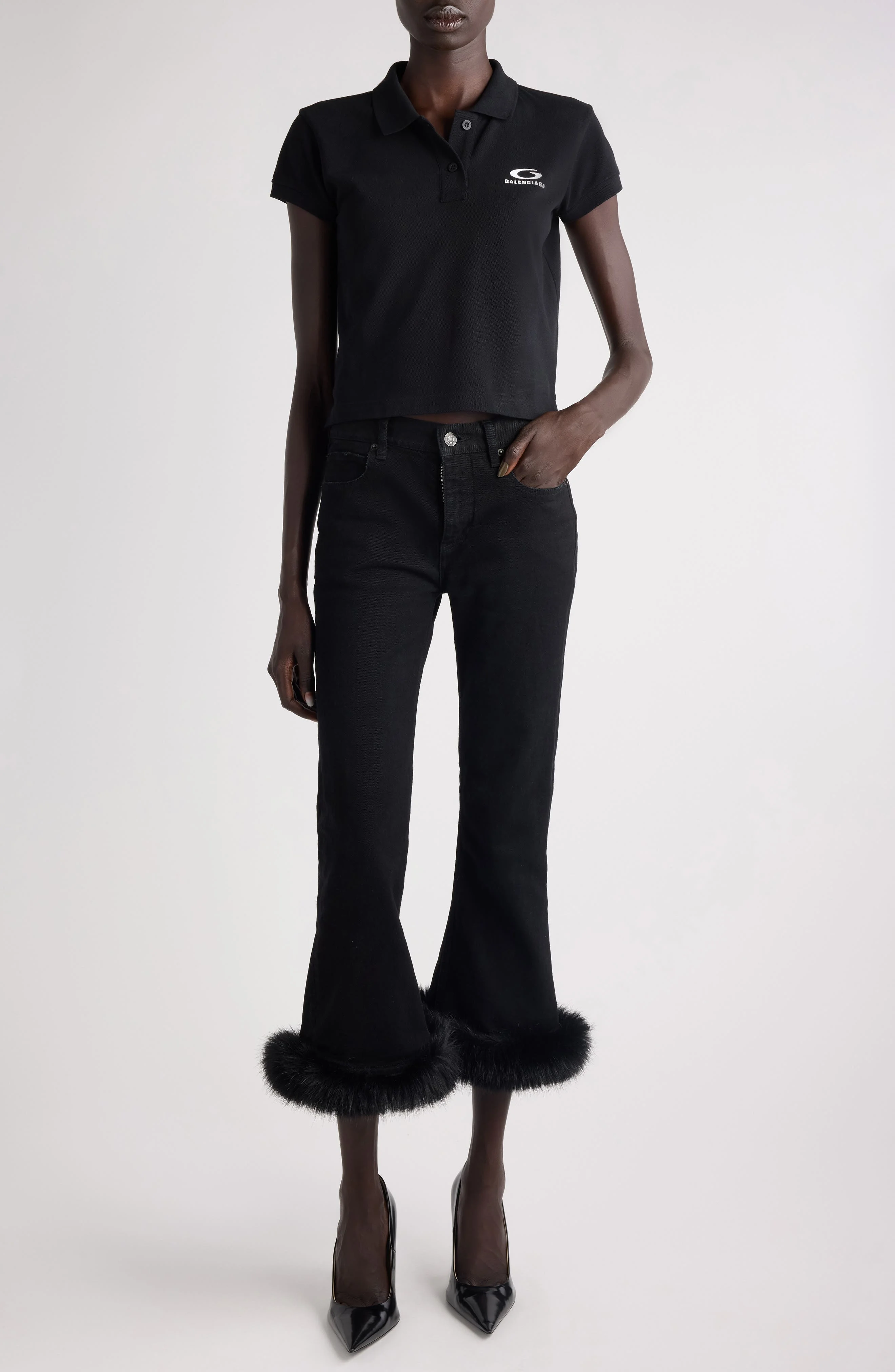 Balenciaga Logo Embroidered Cotton Piqué Polo in 1070 Black/White at Nordstrom