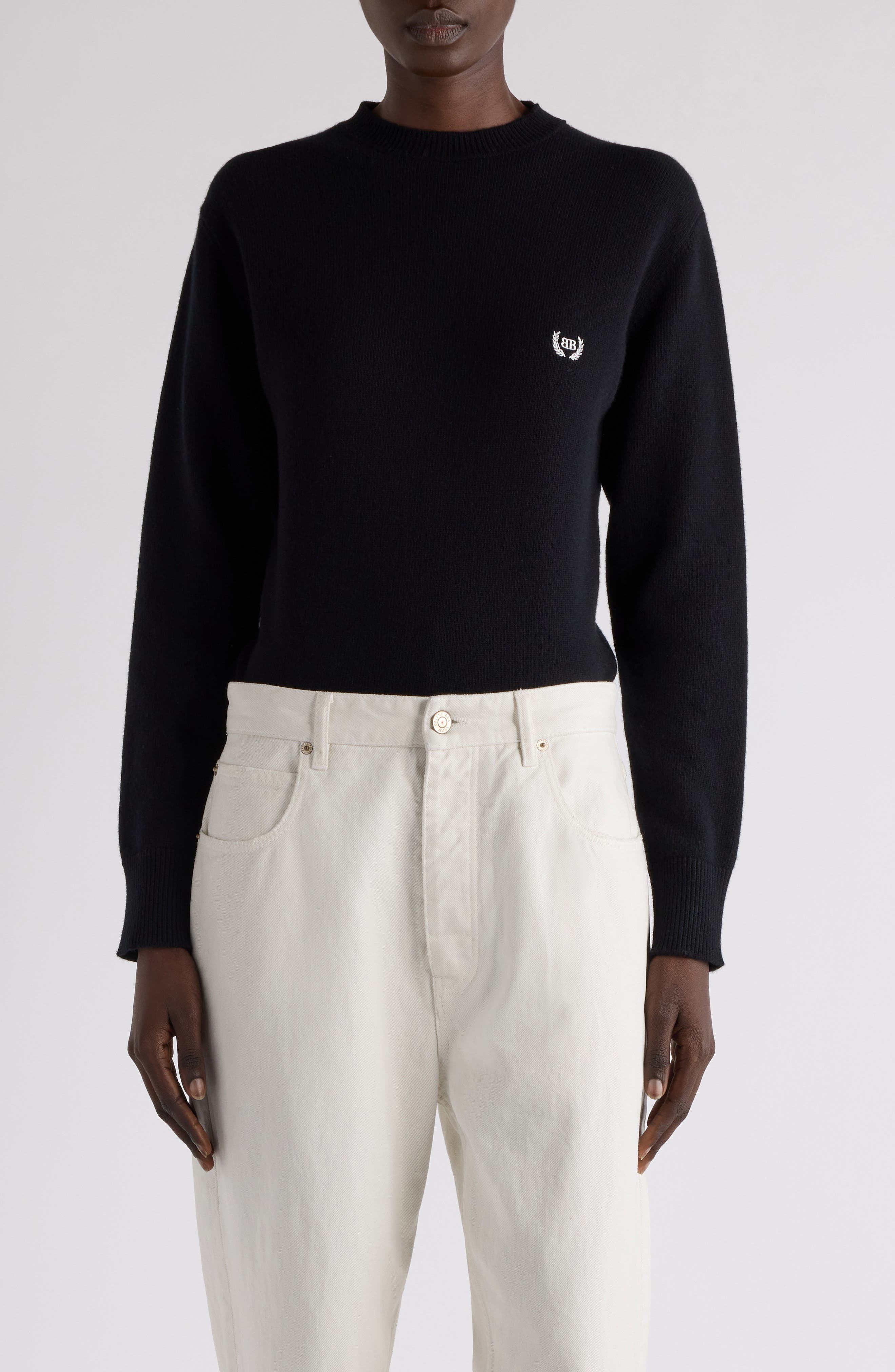 Balenciaga Logo Embroidered Wool Sweater in 1000 Black at Nordstrom