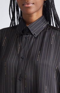 Balenciaga Logo Stripe Cocoon Button-Down Shirt in 1264 Black/Camel at Nordstrom