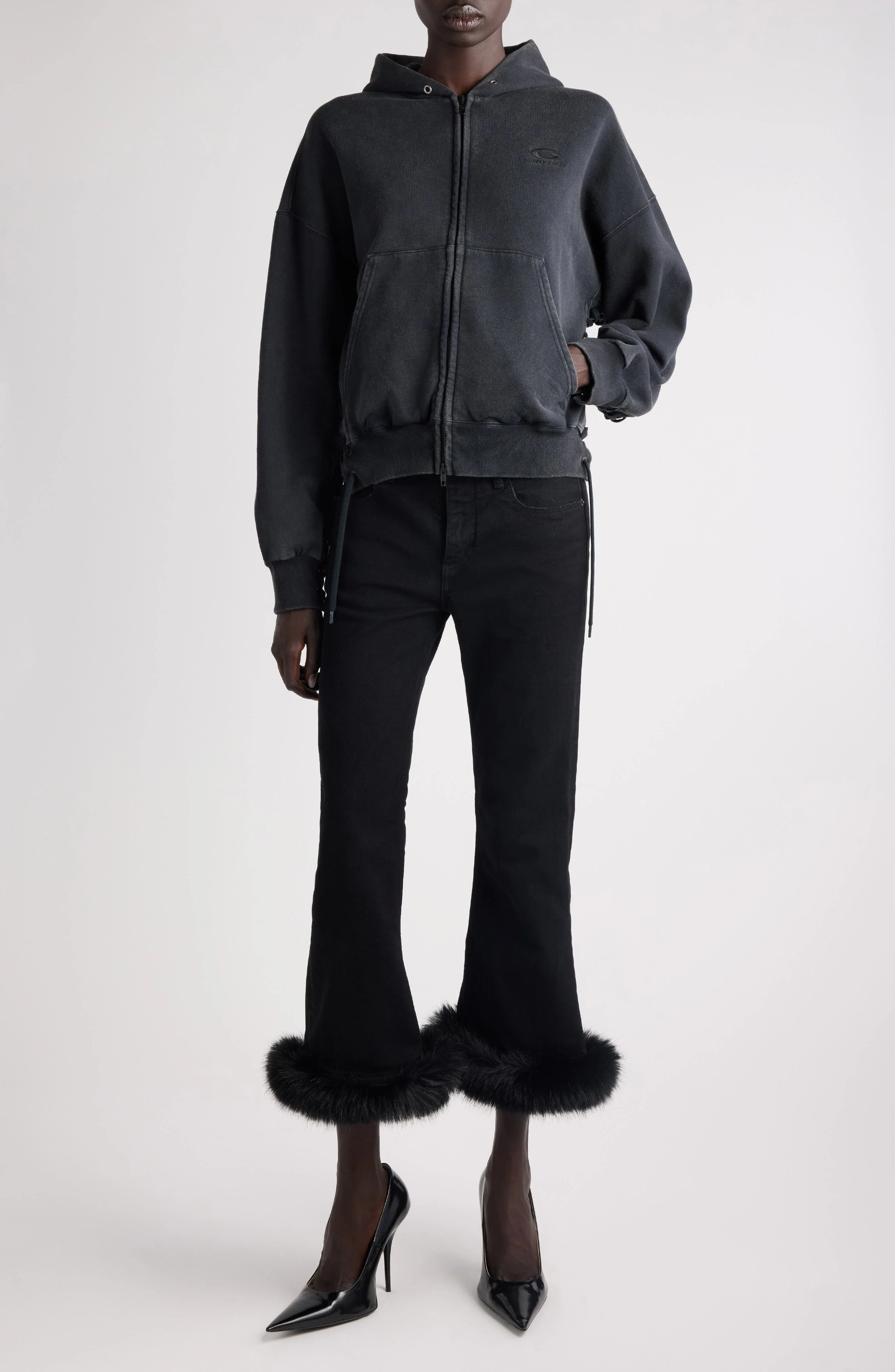 Balenciaga Loop Sports Icon Logo Lace-Up Dry Fleece Full Zip Hoodie in 1041 Faded Washed Black at No