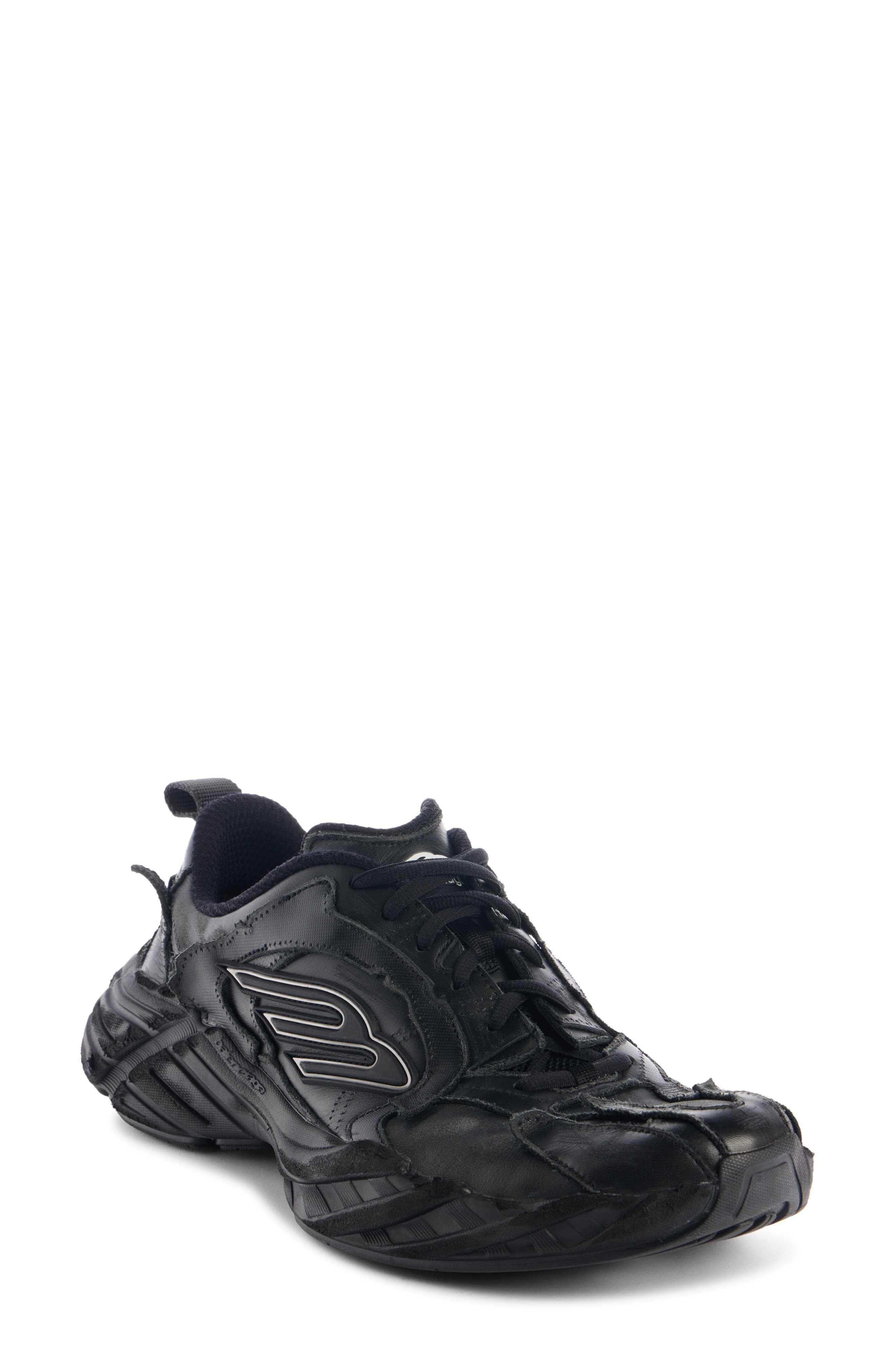 A heavily distressed and scuffed finish suggests you've put in a lot of miles in this running-inspired sneaker branded with the label's 3B logo at the sidewalls. Lace-up style Leather and textile upper/textile lining/synthetic sole Imported Designer Shoes