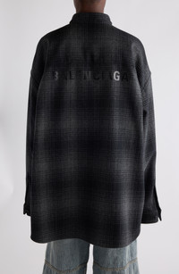 Balenciaga Oversize Plaid Wool Blend Flannel Button-Down Shirt in 1262 Grey/Black at Nordstrom
