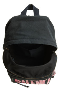A DIY-inspired logo mimics the look of security-tag caution tape on the front pocket of this canvas backpack that's perfect for school, commutes or overnight trips. 12 1/2" x 16" x 3 1/2" Two-way top-zip closure Top carry handle; adjustable, padded backpack straps Front zip pocket Textile Made in Italy