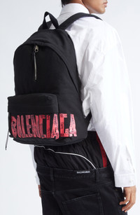 Balenciaga Tape Type Logo Canvas Backpack in Black/Light Red at Nordstrom