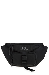 Balenciaga's intersecting Unity Sports icon embroiders the flap of an Italian-crafted belt bag constructed from durable, lightweight materials. Top zip closure with beneath exterior flap Adjustable belt strap with squeeze buckle Exterior zip pocket; front zip-around pocket; back zip pocket Textile lining Textile Made in Italy Designer Handbags