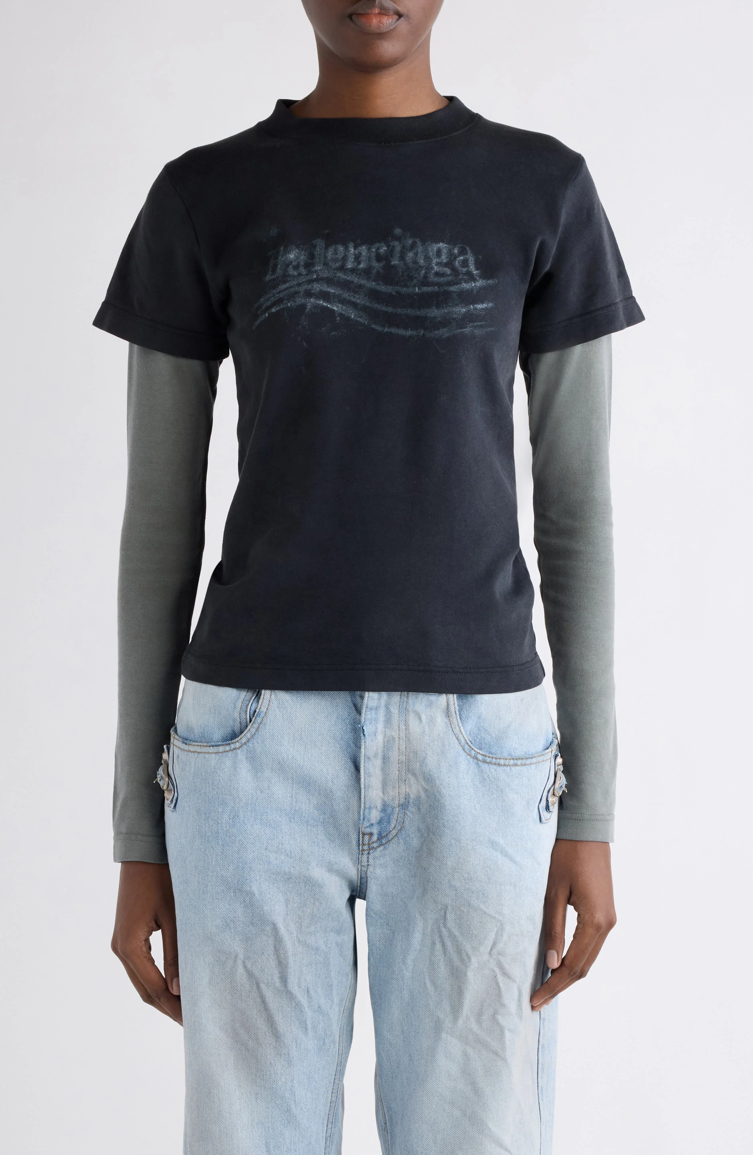 Balenciaga Washed Crayon Political Logo Layered T-Shirt in 1055 Washed Black at Nordstrom