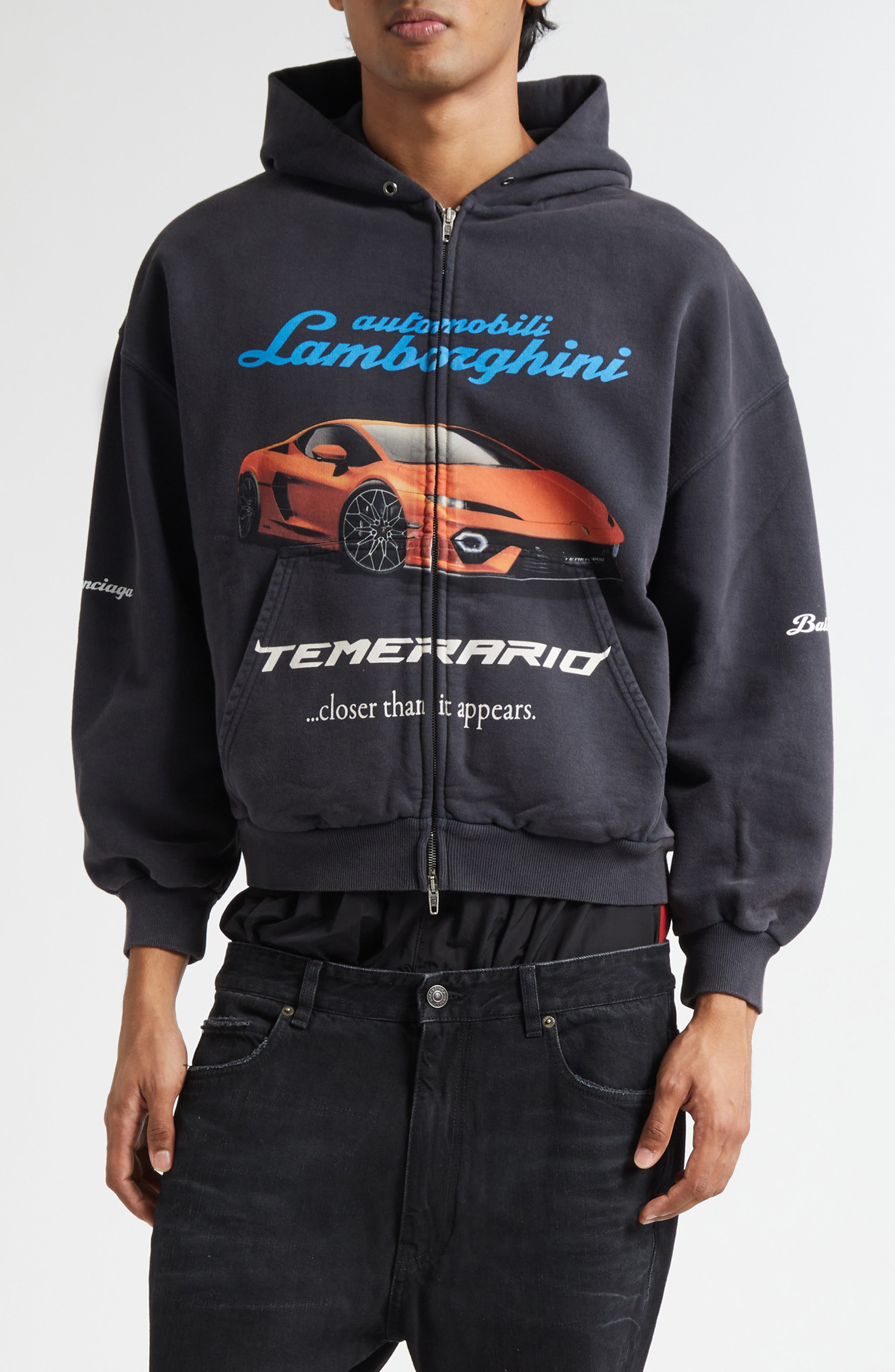 Men's Balenciaga I Automobili Lamborghini Zip-up Hoodie Small Fit in Black Faded