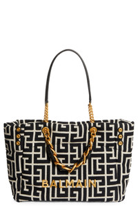 Founder Pierre Balmain's fascination with France's labyrinthine gardens manifests in a maze-like pattern on this spacious tote with gilded, leather-wrapped chains. Olivier Rousteing's 1945 collection pays homage to some of the French fashion house's boldest midcentury designs. 15 3/4"W × 11 3/4"H × 5 1/4"D Magnetic-snap closure Top carry handles; shoulder straps Snap gussets Interior zip pocket; card slot Textile/leather lining Textile/leather Made in France Designer Handbags