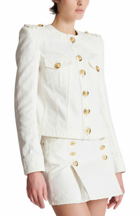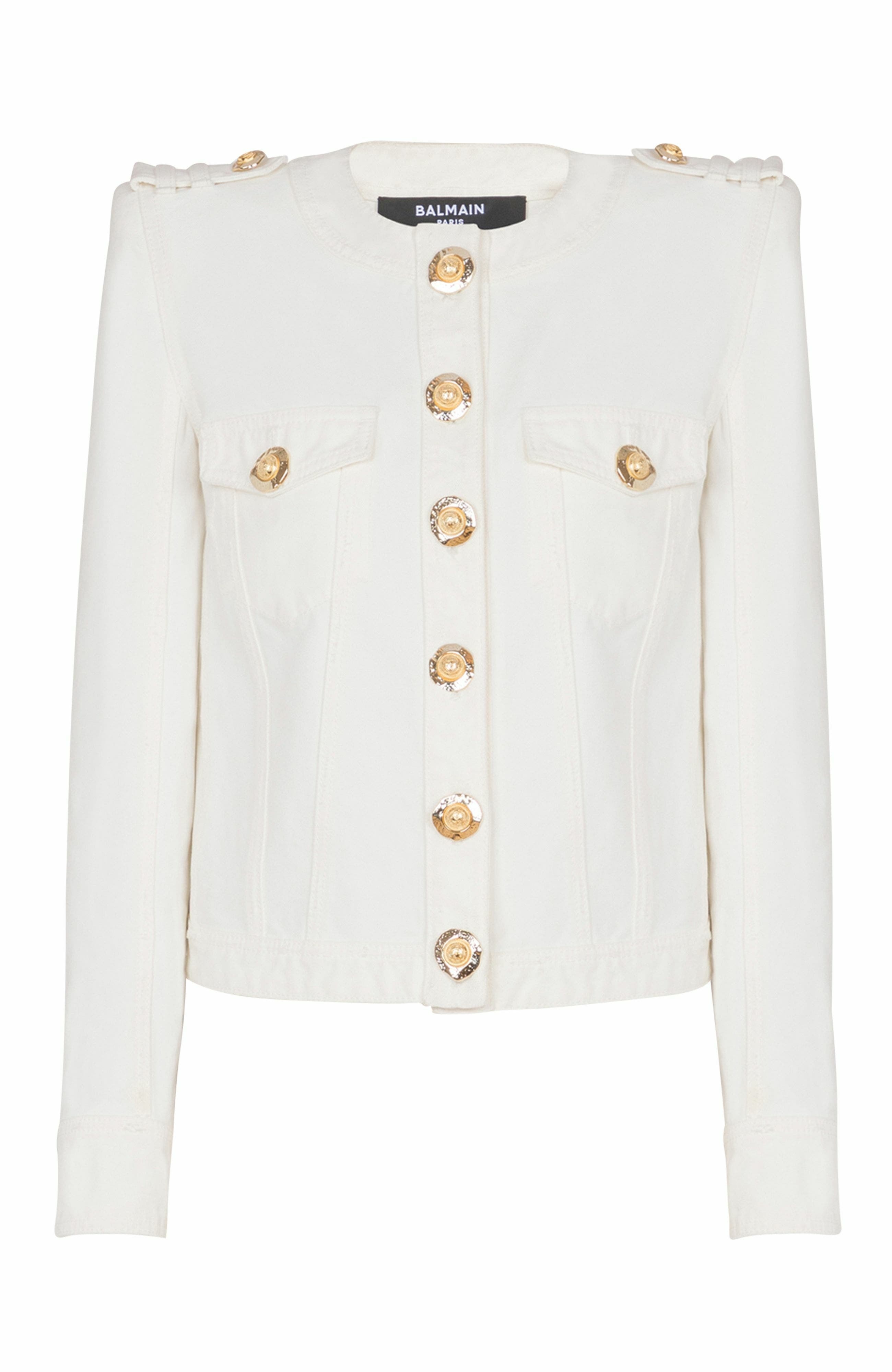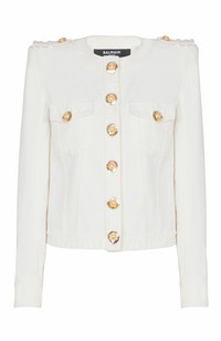 Balmain Cropped cotton canvas jacket in White at Nordstrom