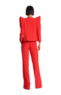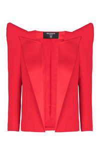 Cropped crepe jacket with structured shoulders