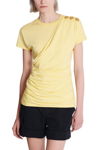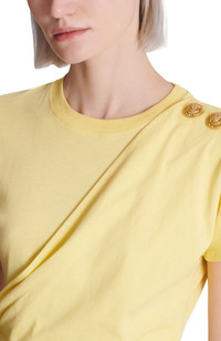 Balmain Draped T-shirt with buttons in Yellow at Nordstrom