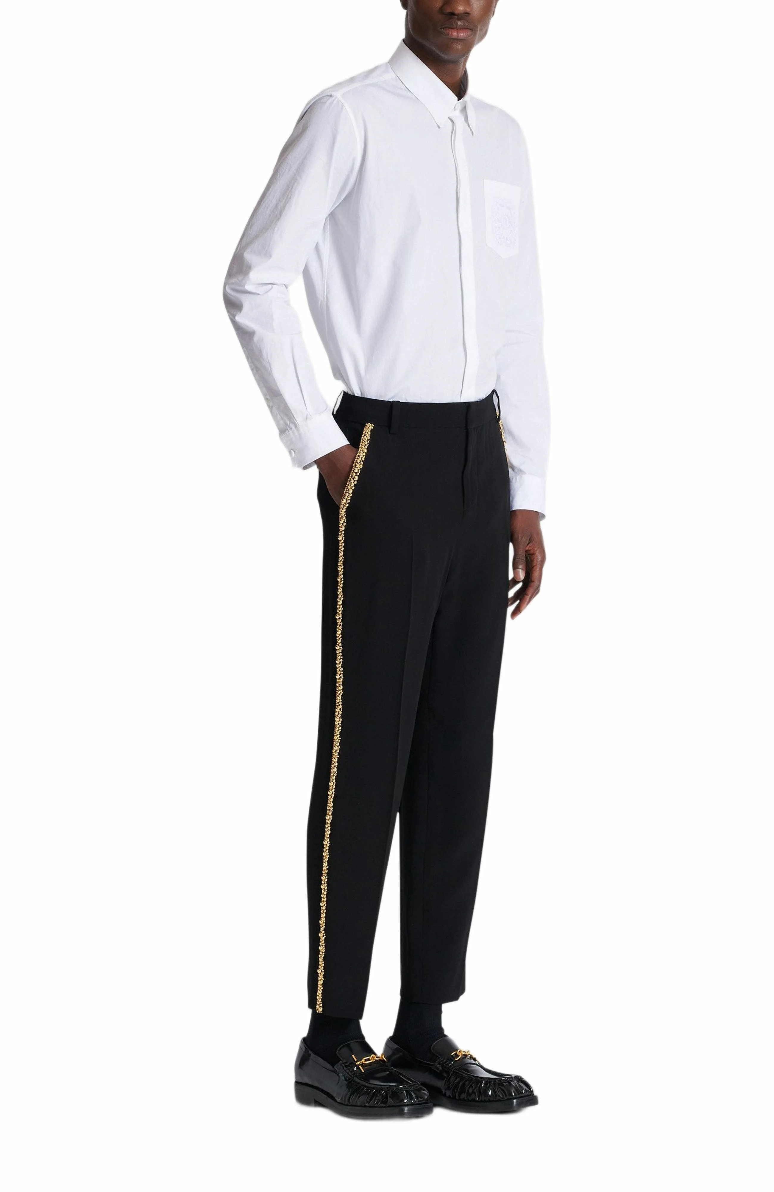 Balmain Embroidered Crepe Straight-Leg Tailored Trousers in Black at Nordstrom