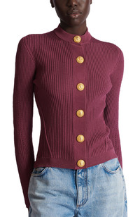 Balmain Fine Knit Cardigan With Buttons in Purple at Nordstrom