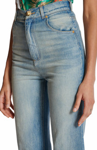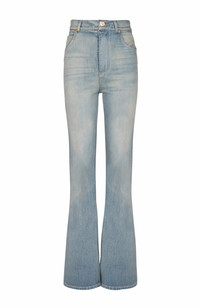 Blue denim jeans Waistband with belt loops and a triple belt loop at the back “Gold and Silver Coin” metal button fastening with zip and fly 5 classic pockets Woven Balmain Vintage label on the back Engraved rivets Gold hardware Flared high-waisted fit Model measures 179cm and wears a size 36 Main material: 100% cotton Made in Italy Item: FF1MJ116DF79