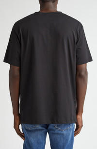 Bold logo details span the front of a T-shirt made for repping the brand in the quiet luxury of breathable cotton. 29" length (size Medium) Crewneck Short sleeves 100% cotton Machine wash, dry flat Made in Portugal Designer Clothing