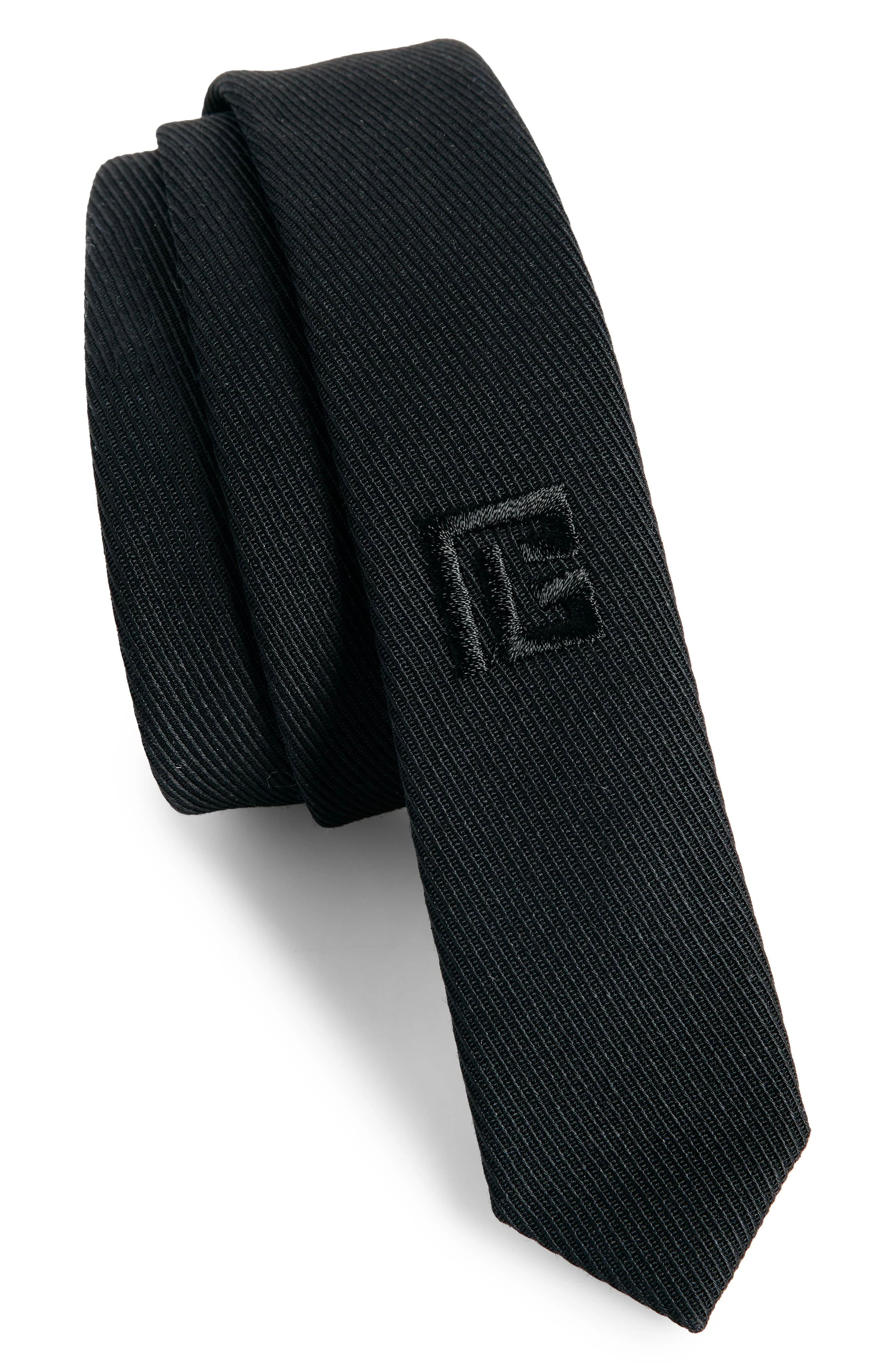 Balmain Logo Embroidered Wool Tie in Black at Nordstrom