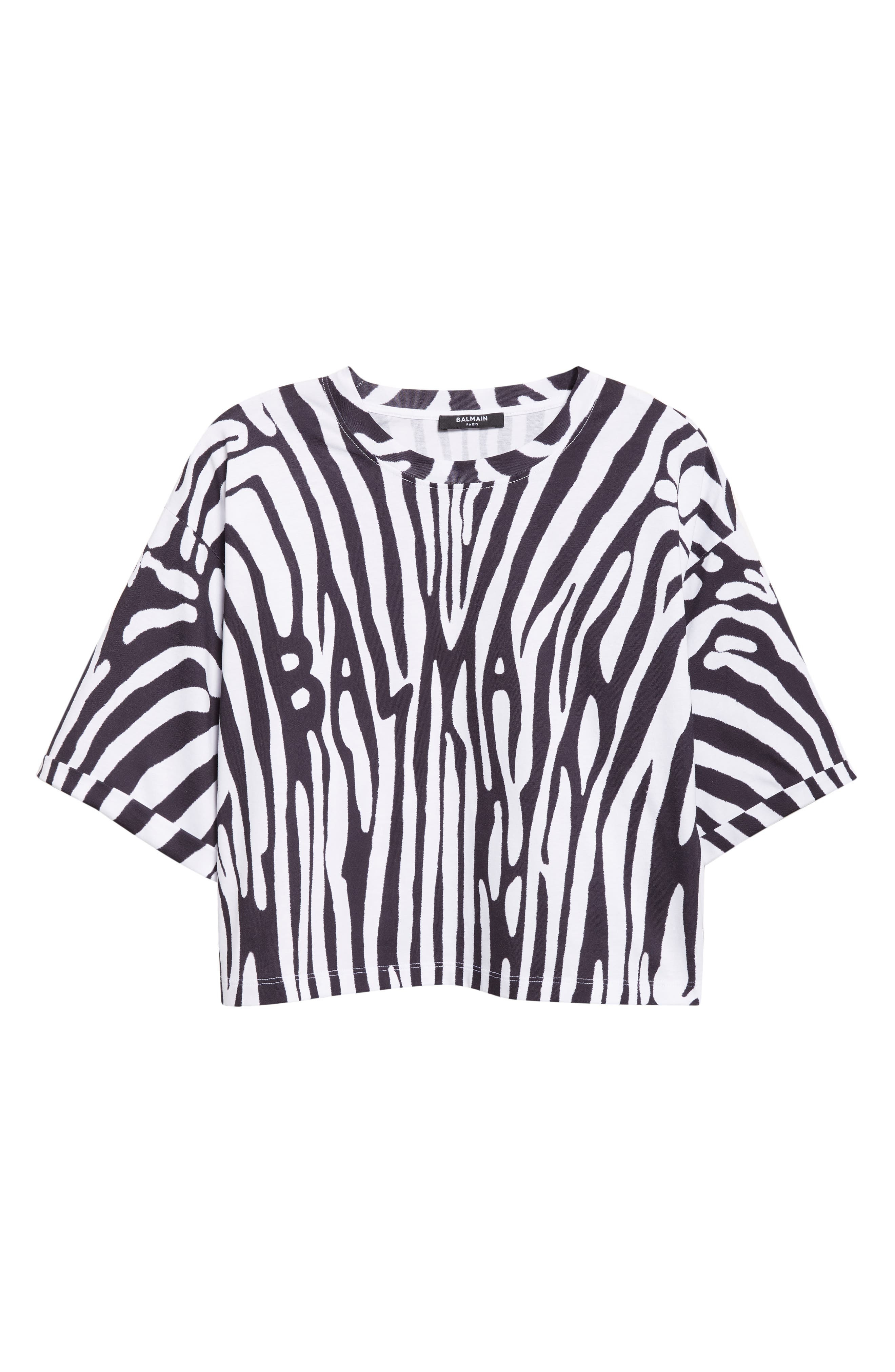 Balmain Logo Zebra Print Crop T-Shirt in Black/White at Nordstrom