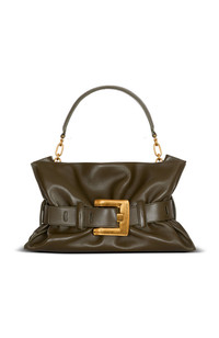 Medium Anthem bag in calfskin leatherSoft belted styleCarry in the hand or wear on the shoulderCovered leather and chain handleSmooth leather belt and belt loopsMetal PB-engraved buckleMetal PB logo on the backMagnetic fasteningGold embossed Balmain logo on the insideInside pocket with press studsEmbossed leather inside card pocketSuede liningGold hardwareDimensions: 35 x 20 x 8 cmMain material: 100% calfskinMade in ItalyItem: GN1KK990LSAX Medium Anthem bag in calfskin leather Soft belted style Carry in the hand or wear on the shoulder Covered leather and chain handle Smooth leather belt and belt loops Metal PB-engraved buckle Metal PB logo on the back Magnetic fastening Gold embossed Balmain logo on the inside Inside pocket with press studs Embossed leather inside card pocket Suede lining Gold hardware Dimensions: 35 x 20 x 8 cm Main material: 100% calfskin Made in Italy Item: GN1KK990LSAX