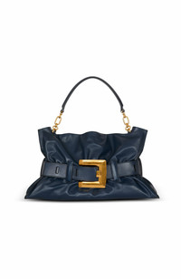 Medium Anthem Shoulder bag in calfskin leather Soft belted style Carry in the hand or wear on the shoulder Covered leather handle and chain Leather belt and belt loops Metal PB-engraved buckle Metal PB logo on the back Magnetic fastening Golden embossed Balmain logo on the inside Inside pocket with press stud Embossed leather inside card pocket Suede leather lining Gold hardware Dimensions: 35 x 20 x 8 cm Main material: 100% calfskin Made in Italy Item: FN1KK990LVGX
