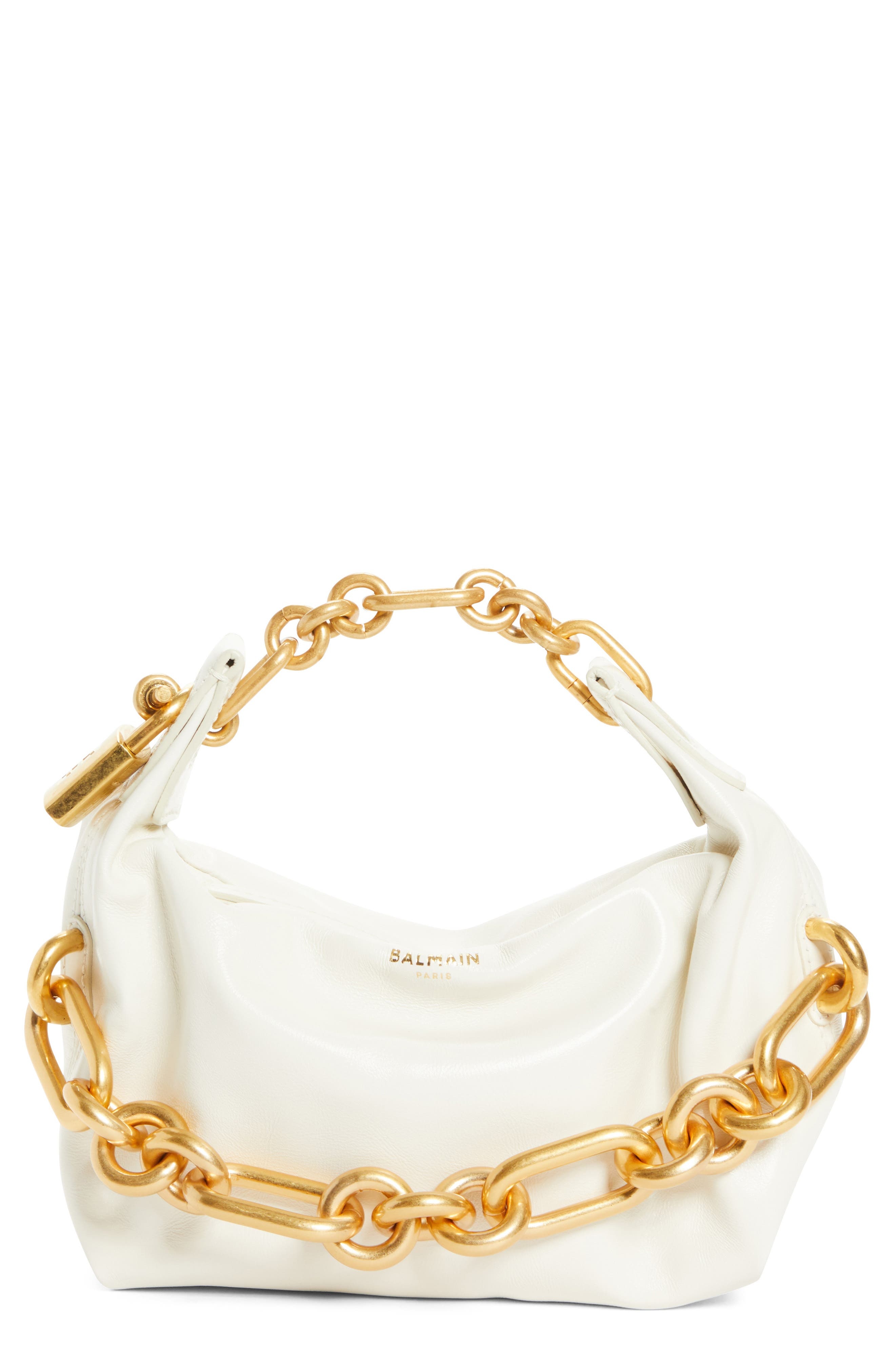 Balmain Mini Sync Leather Top Handle Bag in Cream at Nordstrom