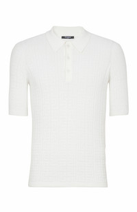 PB Labyrinth knit polo shirt Ribbed polo collar Fastening with 3 Balmain-engraved buttons Short sleeves Ribbed trim Fitted cut Model measures 190cm and wears a size M Main material: 67% viscose 33% polyester Made in Italy Item: FH1GB067KI63 100% of the viscose fibres used to make this garment come from certified, sustainably managed forests