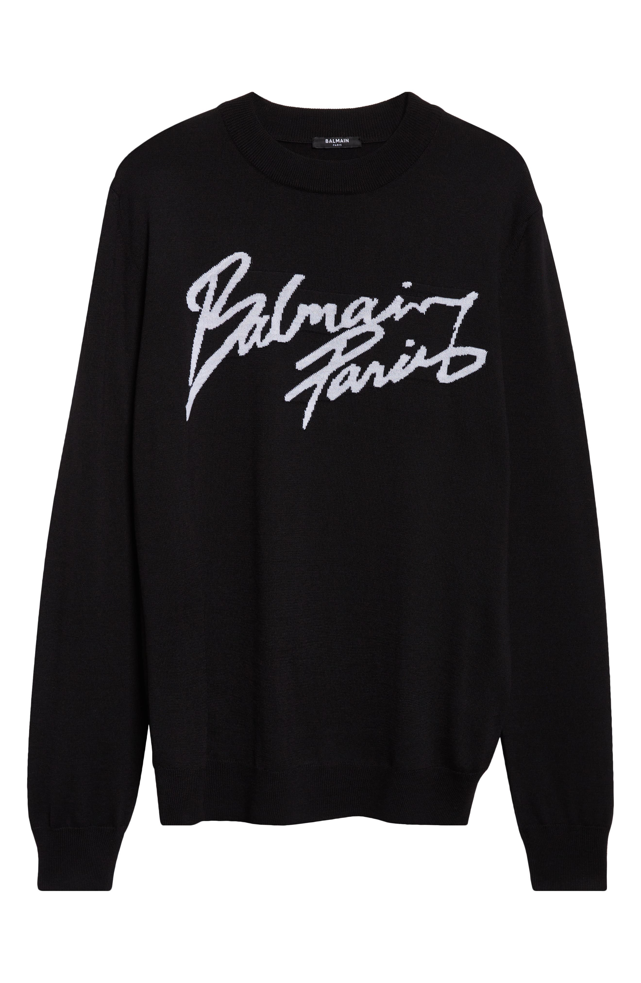 Balmain Paris Logo Intarsia Merino Wool Blend Sweater in Black/White at Nordstrom
