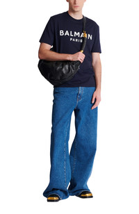 T-shirt with Balmain Paris print on the front\nRound neck\nShort sleeves\nCotton jersey\nRegular fit\nModel measures 187cm and wears a size M\nMain material: 100% cotton\nMade in Portugal\nItem: GH1EG000BD45\n100% of the cotton fibres used to make this garment are certified and organically farmed T-shirt with Balmain Paris print on the front Round neck Short sleeves Cotton jersey Regular fit Model measures 187cm and wears a size M Main material: 100% cotton Made in Portugal Item: GH1EG000BD45 100% of the cotton fibres used to make this garment are certified and organically farmed