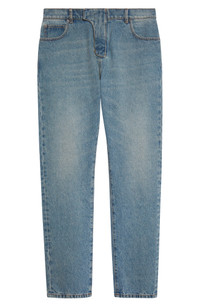 These regular-fit jeans cut with a straight leg from nonstretch denim in a faded-blue wash have all the qualifications of a classic pair except for the unexpected placket covering the zip fly. Zip fly with hook-and-bar closure under placket Five-pocket style 100% cotton Dry clean Made in Italy Designer Clothing