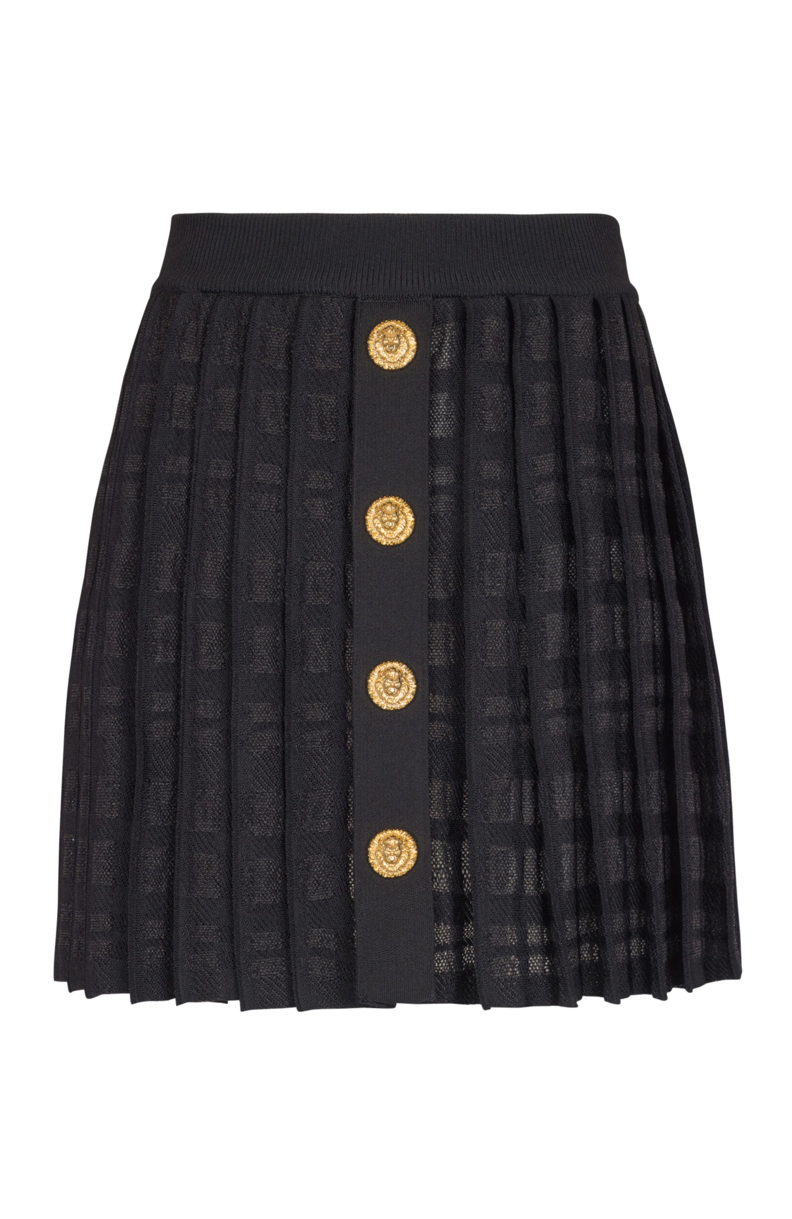 Short pleated skirt in plaid knitWaistbandDecorative 'Lion Head' buttons on the frontVisible zip fastening on the back with Balmain Paris-engraved sliderFlared cutModel measures 180cm and wears a size 36Main material: 77% viscose 14% polyester 8% polyamide 1% elastaneMade in FranceItem: GF1LB664KJ34100% of the viscose fibres used to make this garment come from certified, sustainably managed forests Short pleated skirt in plaid knit Waistband Decorative 'Lion Head' buttons on the front Visible zip fastening on the back with Balmain Paris-engraved slider Flared cut Model measures 180cm and wears a size 36 Main material: 77% viscose 14% polyester 8% polyamide 1% elastane Made in France Item: GF1LB664KJ34 100% of the viscose fibres used to make this garment come from certified, sustainably managed forests
