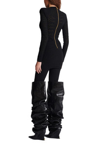 Short sequin dress in crocodile knit Rounded crew neckline Long sleeves Visible zip fastening with Balmain Paris-engraved slider Fitted cut and sheer details Model measures 180cm and wears a size 36 Main material: 80% viscose 12% polyester 7% polyamide 1% elastane Made in France Item: FF0R801297KI 100% of the viscose fibres used to make this garment come from certified, sustainably managed forests