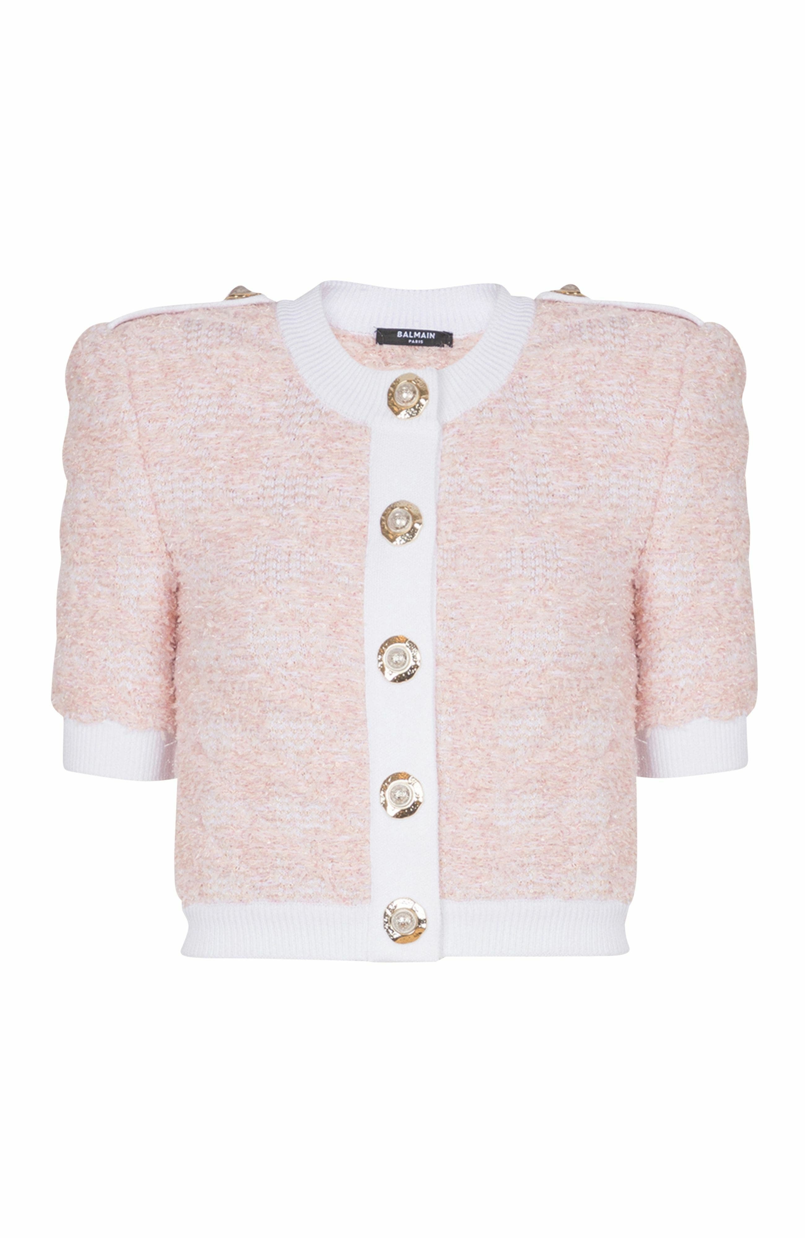 Balmain Short-sleeved knit cardigan in Pink at Nordstrom