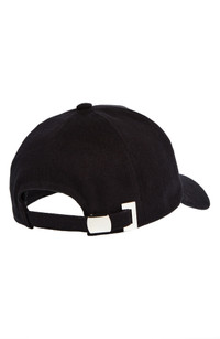 Embroidered script signs the front panel of a classic cotton baseball cap with gleaming hardware securing the adjustable back strap. Adjustable back strap 100% cotton Spot clean Imported