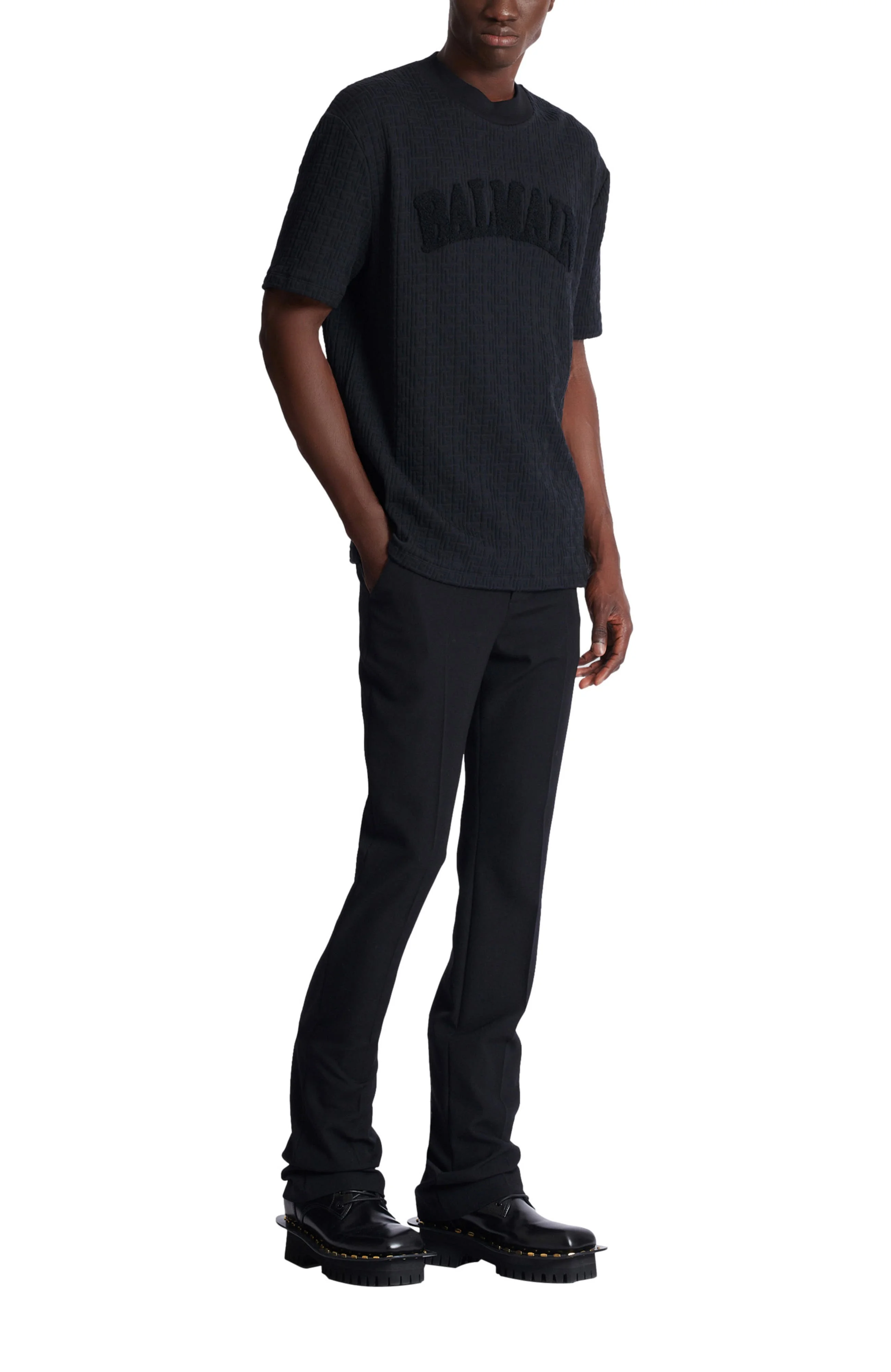 Balmain Terry monogram T-shirt in Black at Nordstrom