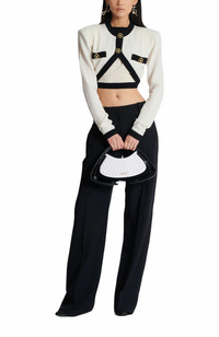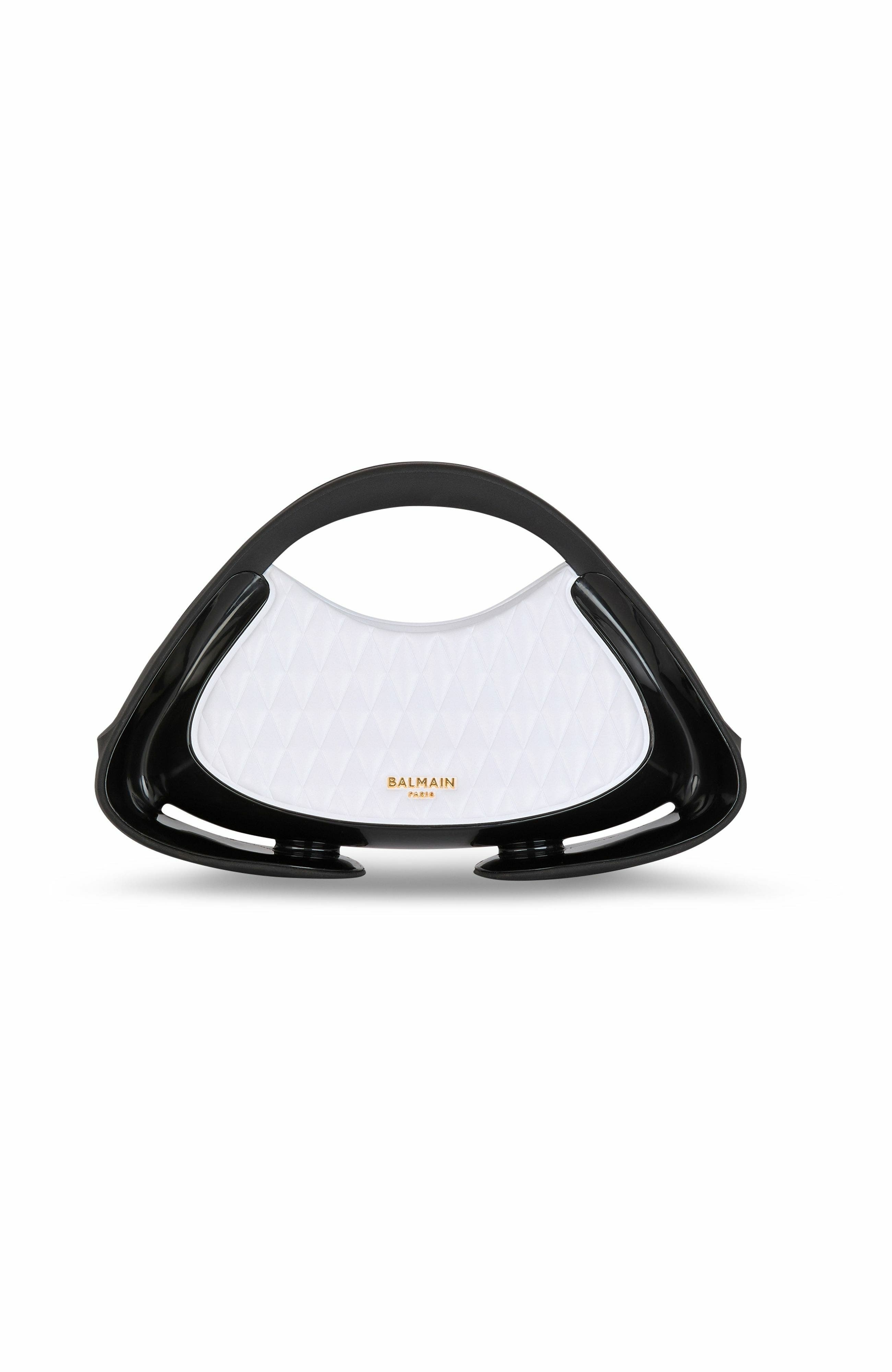 Two-tone quilted medium Jolie Madame bagQuilted leather-look designMetal Balmain Paris logo on the frontCarry in the hand, on the shoulder or across the bodySoft rubber handlesCurved side piecesFaux leather and chain shoulder strap, adjustable and detachable with snap hooksGlossy curved side detailingMagnetic fasteningInside faux leather card pocket, embossed Balmain logoFaux leather liningGold and matte black hardwareDimensions: 22.5 x 35 x 8.5 cmMain material: 100% polyurethaneMade in ChinaItem: DN0DB903KTGL Two-tone quilted medium Jolie Madame bag Quilted leather-look design Metal Balmain Paris logo on the front Carry in the hand, on the shoulder or across the body Soft rubber handles Curved side pieces Faux leather and chain shoulder strap, adjustable and detachable with snap hooks