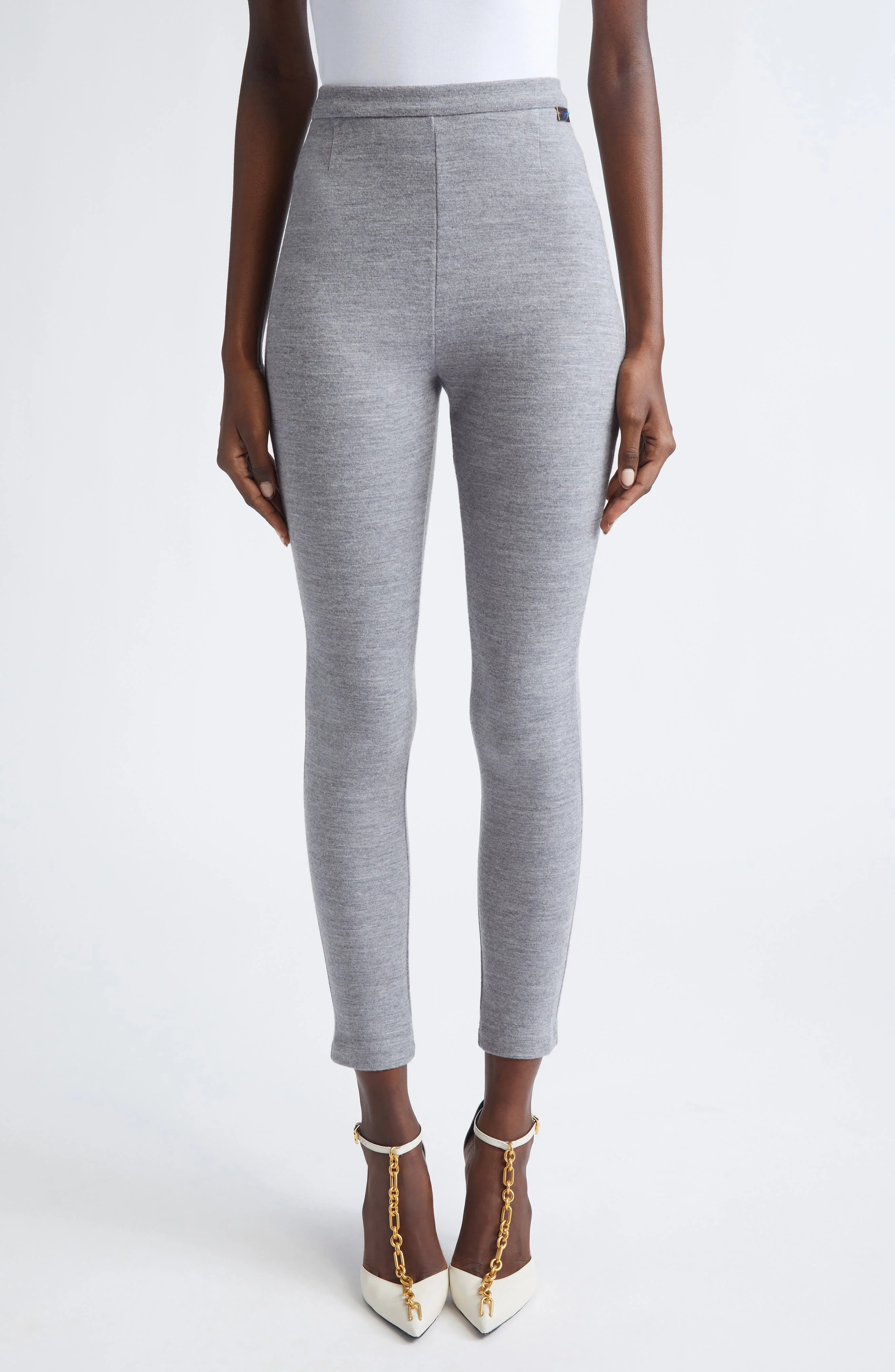 Balmain Virgin Wool & Cotton Blend Leggings in Light Grey at Nordstrom