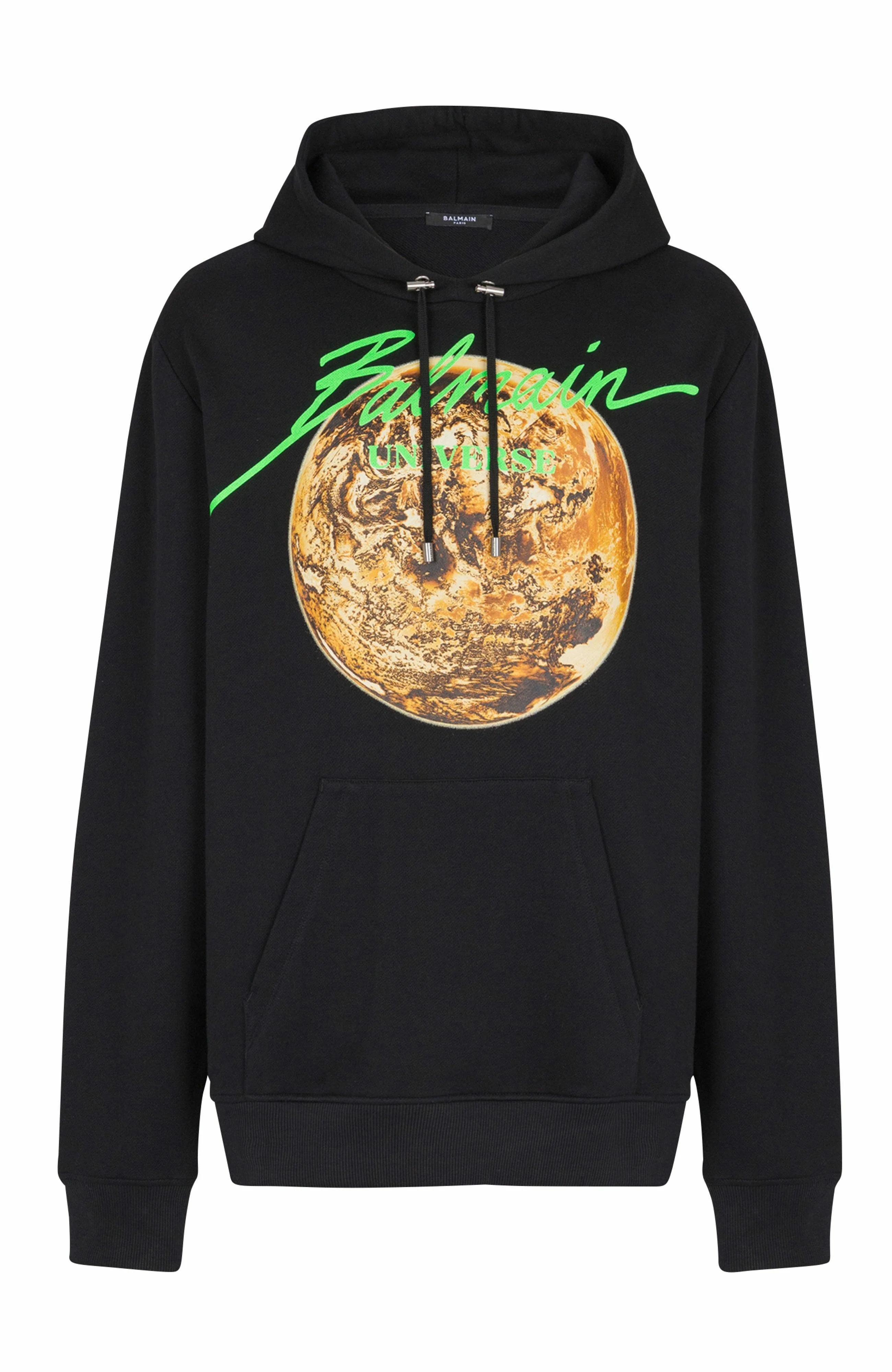 Printed Balmain Universe logo and planet hoodie in Black at Nordstrom
