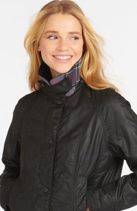 This utilitarian waxed-cotton jacket is the definition of rugged durability and is perfect for multiseason wear. Corrosion-proof zippers, oxidized snaps and double-stitched seams create a weatherproof finish, while a contrast corduroy collar and plaid-patterned lining add heritage appeal. 28" length (size 12 UK) Front zip closure with snap storm placket Notched collar with adjustable snap throat latch Front slant pockets; front snap-flap patch pockets; interior zip pockets Snap-closure side vents Compatible with Beadnell hood and quilted liner (sold separately) Thermal cotton lining 100% cotton with waxed coating Spot clean Imported