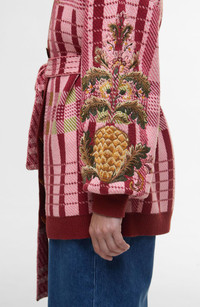 A blown-out, abstract riff on Barbour's iconic tartan overlaid with pineapple embroidery brings fresh Farm Rio energy to this belted cardigan the blends timeless British heritage with Brazilian tropical vibrance. Front button closure V-neck Long sleeves Removable tie belt 100% cotton Hand wash, dry flat Made in Turkey