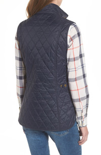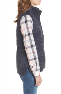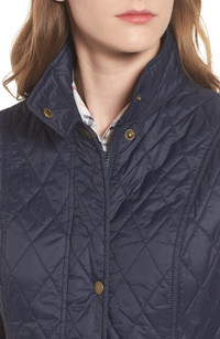 Layer up for cool weather in this lightweight, diamond-quilted vest made with generous front snap-flap pockets and a wind-blocking stand collar. 26 1/2" front length; 28 1/2" back length (size 12 UK) Front zip closure with snap placket Stand collar Front snap-flap patch pockets Lined 100% polyamide Machine wash, tumble dry Imported Coats