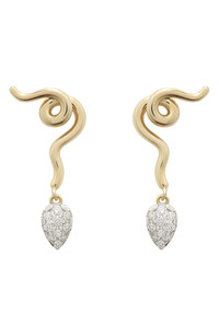 Pave diamonds twinkle at the teardrop tips of these swirling, vine-like drop earrings cast in 9-karat gold. Total diamond weight: 0.24ct. Post back 9k gold/diamond Made in Italy >Diamond Guide
