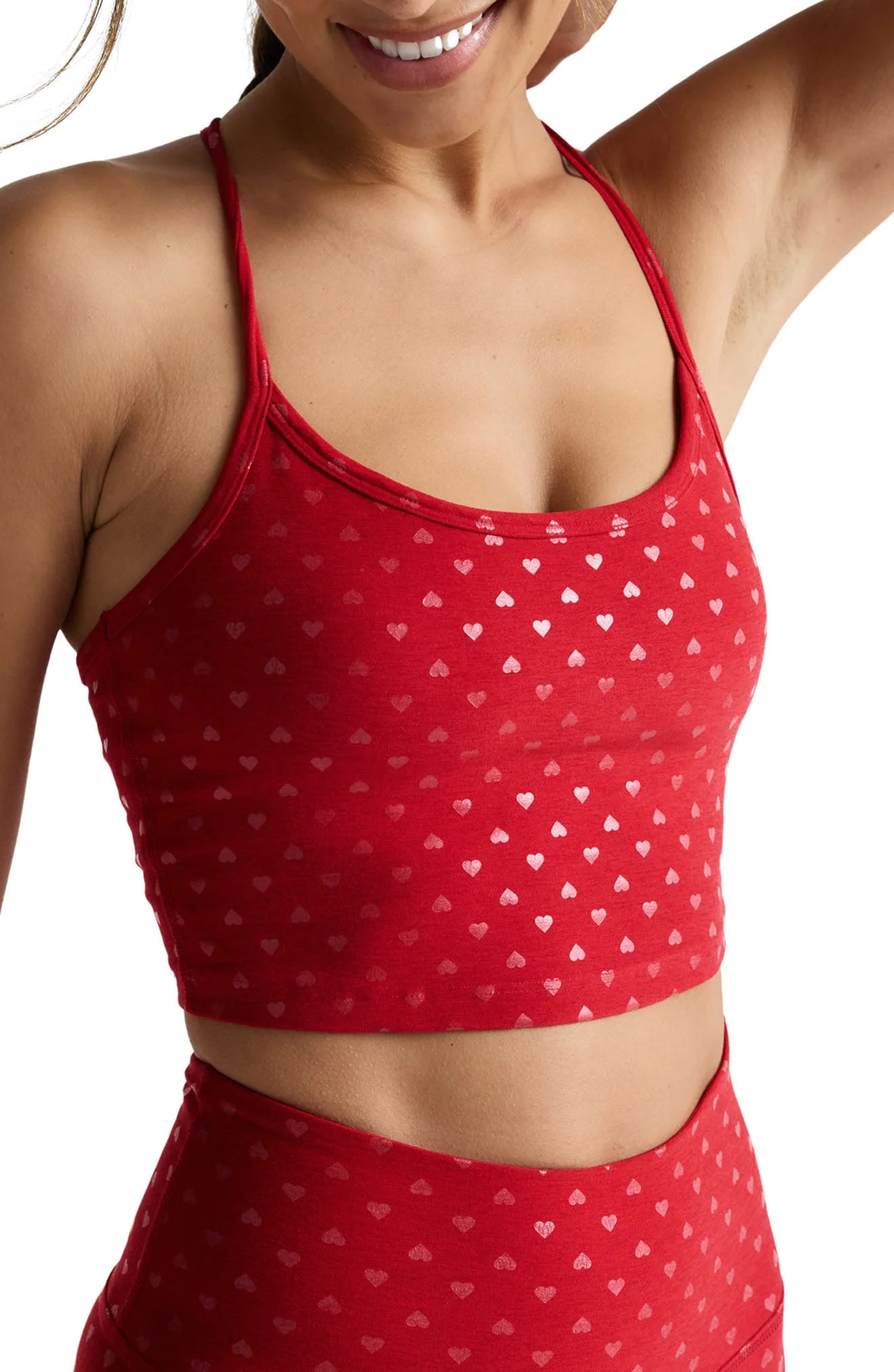 Beyond Yoga Softshine Racerback Crop Tank in Holly Red Ditsy Hearts at Nordstrom