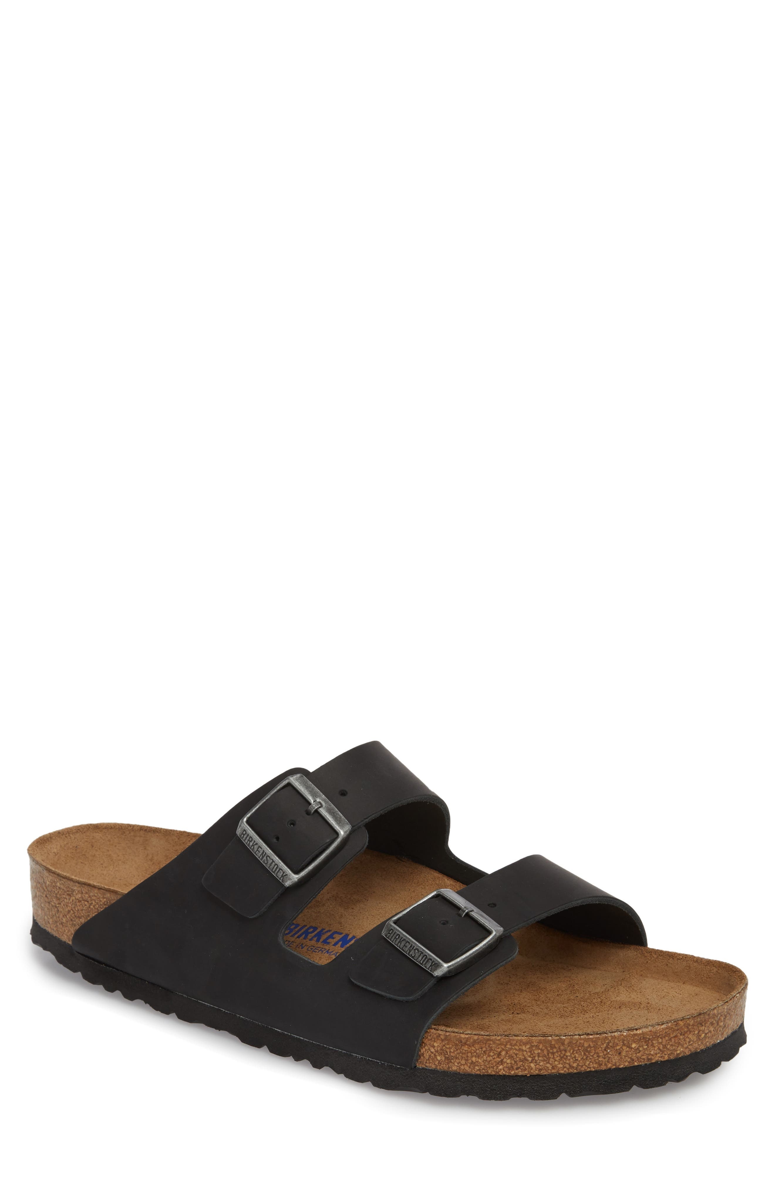 An iconic sandal is set on a softer-than-ever, shock-absorbing footbed with an extra layer of plush foam cushioning that mimics the shape of the foot. Adjustable straps with buckle closure Contoured footbed with arch support Leather upper and lining/synthetic sole Made in Germany Men's Shoes