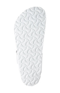 Available in an array of colors, this flip-flop is fitted with a molded footbed and topped with a Birko-Flor strap, cut from fabric with a leather-like finish. The toe piece is made of flexible resin, anatomically designed to fit comfortably between the toes, and the soft suede insole absorbs moisture and feels great against the skin. 1 1/2" heel; 1" platform (size 39) Adjustable strap with buckle closure Contoured footbed with arch support Synthetic upper/leather and textile lining/synthetic sole Imported Women's Shoes