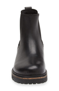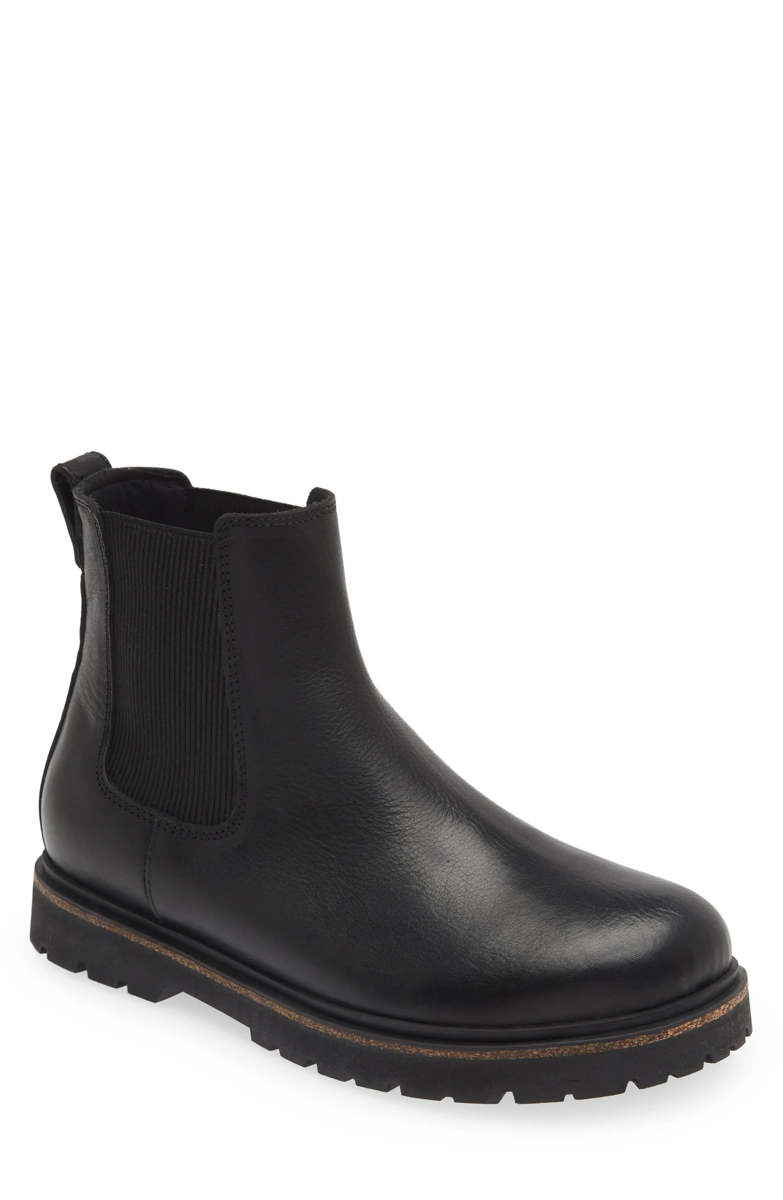 Chunky lugs lend rugged grounding to this robust Chelsea boot crafted from smooth leather and cushioned by the brand's iconic contoured cork footbed. 5 1/2" shaft Pull-on style with elastic gore insets Removable, cushioned insole with arch support Leather upper and lining/synthetic sole Made in Portugal