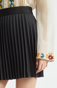A lookbook-featured style, this pleated mini was inspired by a vintage tennis skirt and was re-created, perfect pleats and all, for Bode's spring '25 collection. Tonal logo embroidery sits just above the hemline. Hidden side-zip closure 100% polyester Dry clean Made in Portugal Designer Clothing