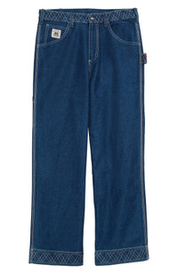 A 20th-century European smock from designer Emily Adams Bode Aujla's personal collection inspired these nonstretch-denim wide-leg jeans detailed with geometric contrast topstitching. Bode's 'Knolly Brook' label in stitched into the coin pocket 29" inseam; 20" leg opening; 13 1/2" front rise; 19" back rise (size 36) Zip fly with button closure Five-pocket style; carpenter pocket; hammer loop 100% cotton Dry clean Imported Designer Clothing