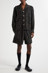 Bode Glitter Dot Faille Button-Up Shirt in Black Silver at Nordstrom